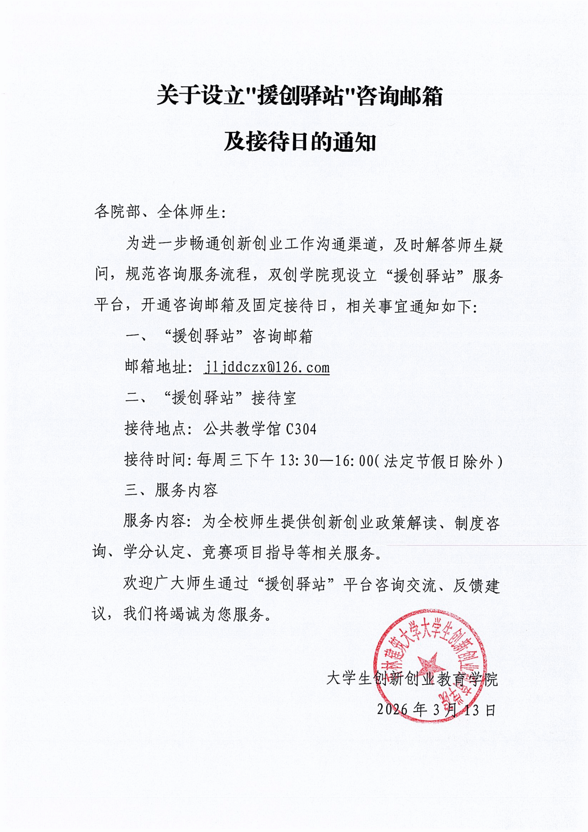 关于设立"援创驿站"咨询邮箱及接待日的通知
