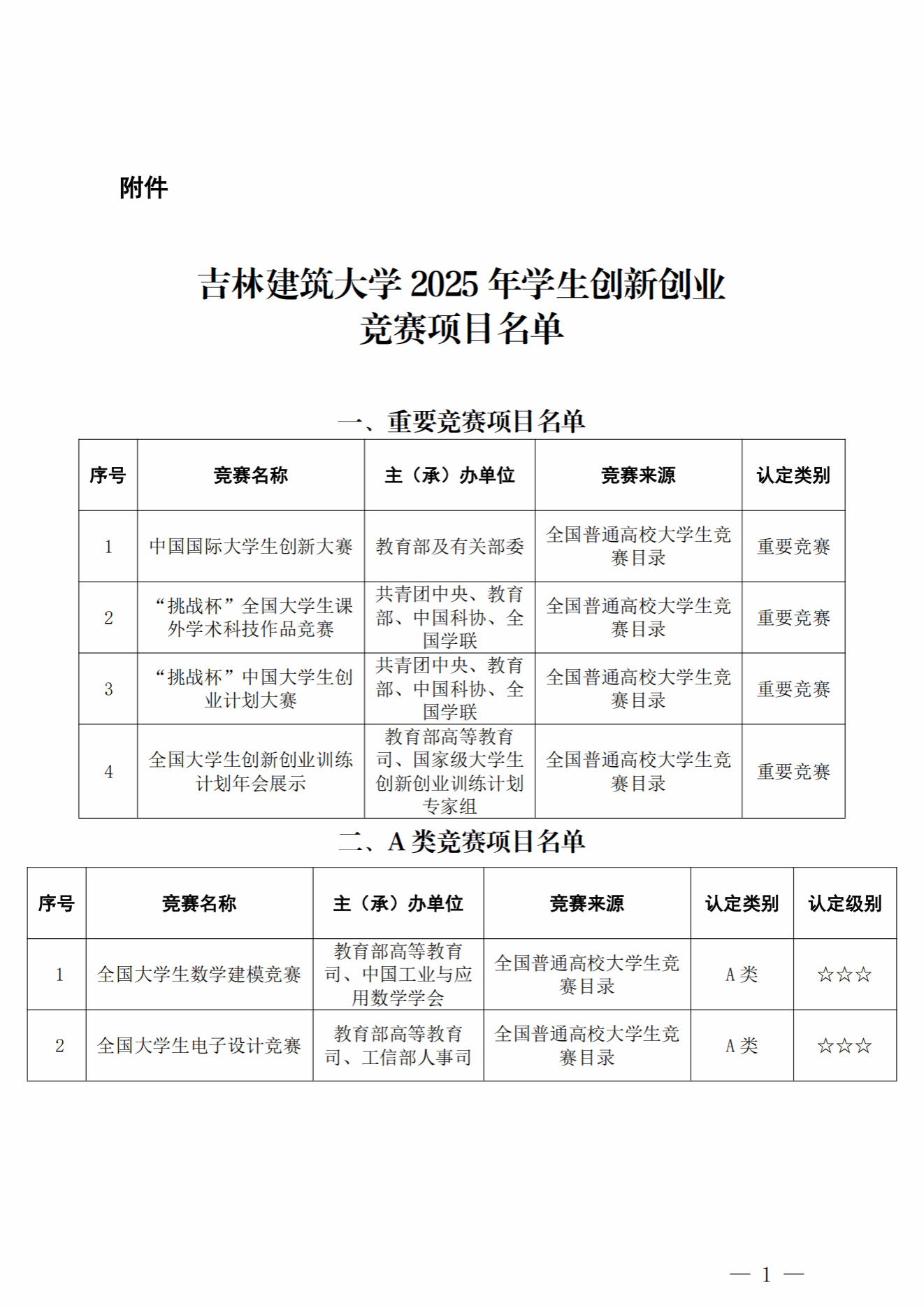 吉林建筑大学2025学生创新创业竞赛项目名单